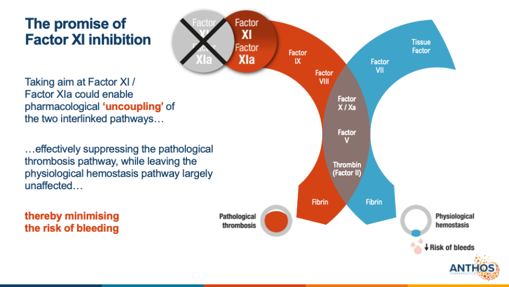 “Focusing on factor XI inhibition is where we believe we can leave normal hemostasis intact while protecting from thrombosis in vessels,” Glasspool explained. “This paradigm shift to factor XI is important to provide protection with a much lower risk of bleeding, enabling more people to get treated.”