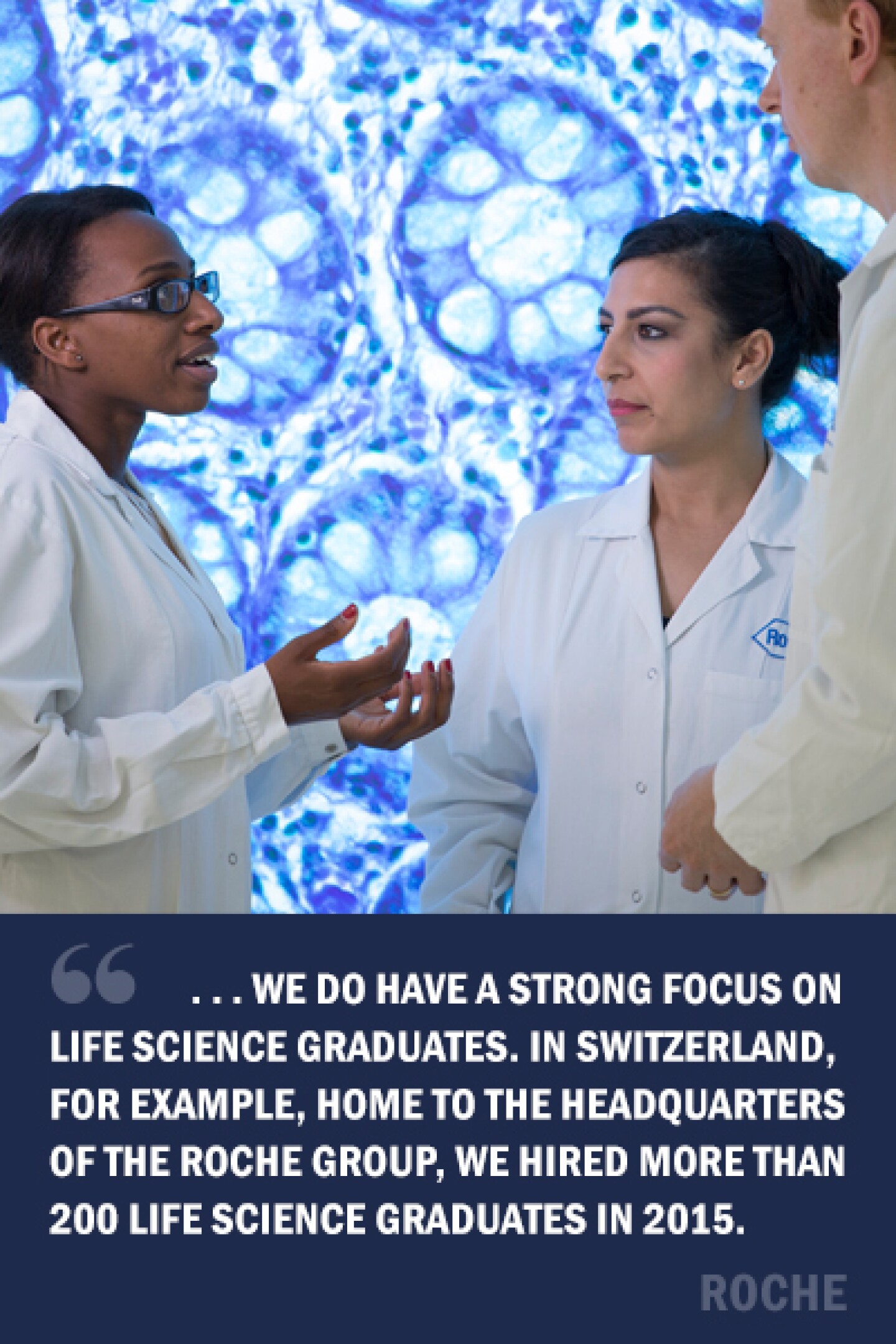 In an interview with BioSpace, a Roche spokesperson said, “As a research-driven company with more than 90,000 employees worldwide, we do have a strong focus on life science graduates. In Switzerland, for example, home to the headquarters of the Roche Group, we hired more than 200 life science graduates in 2015.”