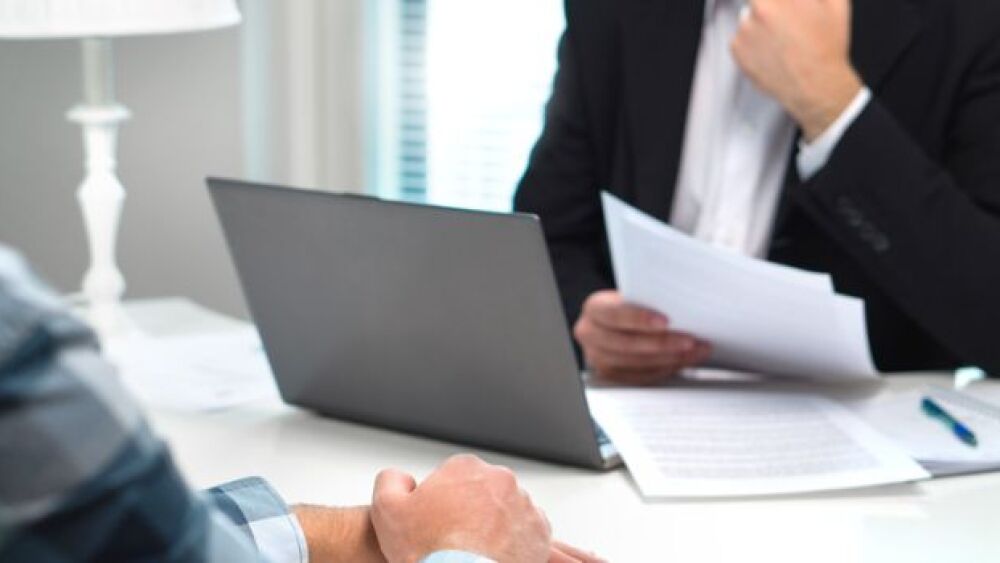 Pictured: Two professionals in an interview/courtesy Getty Images
