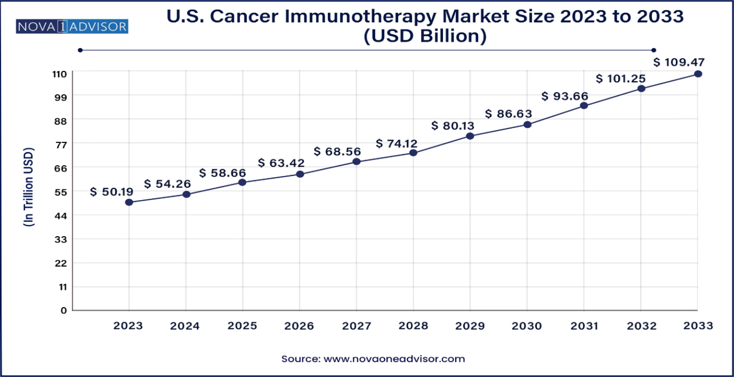 The U.S. cancer immunotherapy market size is calculated at USD 54.26 billion for 2024 and is expected to reach around USD 109.47 billion by 2033, growing at a CAGR of 8.11% from 2024 to 2033.