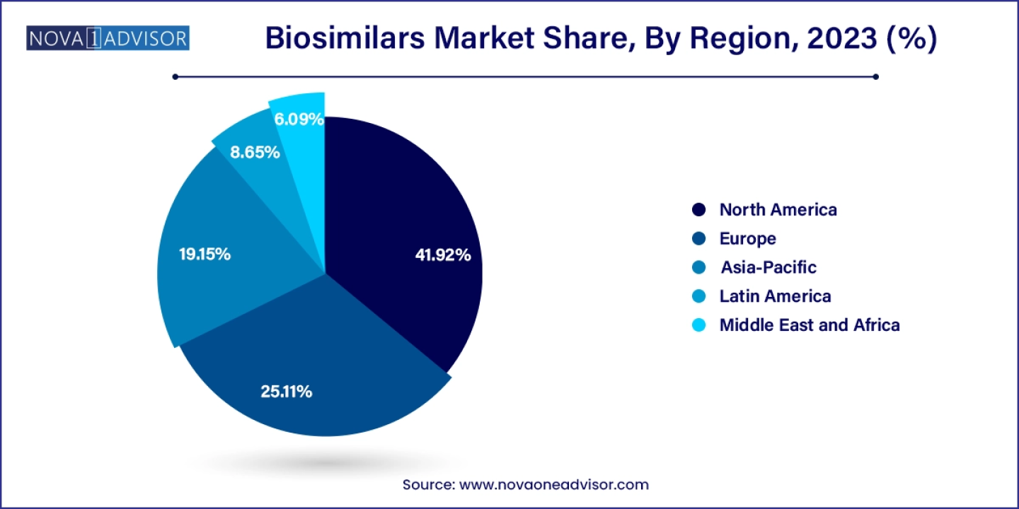 North America dominated the market with the largest revenue share of 41.0% in 2023. driven by the expiration of patents for established biologic drugs. This region has the potential to become global suppliers of affordable, safe, and effective biosimilars. With more biosimilars in development across Asia-Pacific than anywhere else, emerging Asian economies are poised to enhance their domestic biologics and biotechnology capabilities. This positions domestic and regional manufacturers in these markets to potentially assume a global leadership role in the biosimilars industry in the near future.