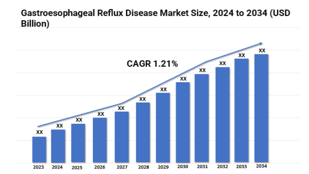 The gastroesophageal reflux disease market is expected to reach a growth rate (CAGR) of 1.21% during 2024-2034.