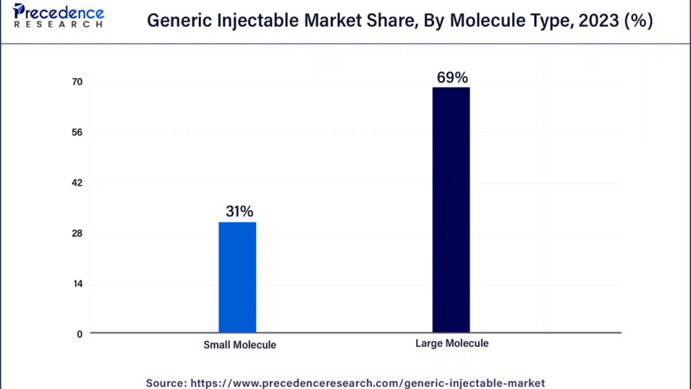 The increased research and development in large molecules are driving substantial growth and opportunity in the generic injectables market. Large molecule drugs encompass a diverse range of recombinant expressions, with the manufacturing process predominantly occurring in specialized clean areas. These areas, akin to those used in pivotal manufacturing processes for parenteral pharmaceuticals, require stringent design, primary engineering control, and maintenance to ensure product safety. A sterile environment, classified as Grade A or ISO Class 5, is essential for all open handling of large molecule drugs to prevent contamination. This rigorous approach to manufacturing underscores the potential of large molecules in expanding market share and delivering safe, effective generic injectable.