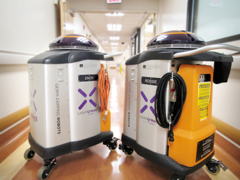 Rossie and Zach are the LightStrike Germ-Zapping Robots that have helped Rush Foundation Hospital decrease its C.diff and MRSA infection rates. (Photo: Business Wire)