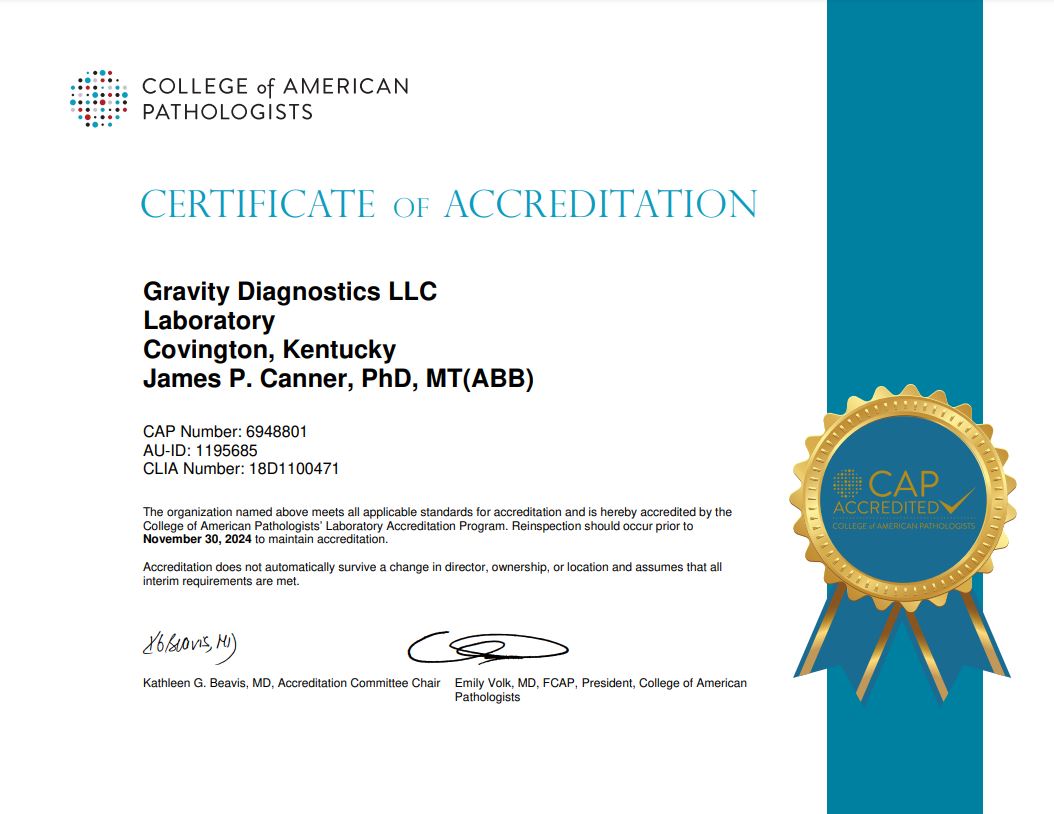 Gravity Diagnostics is one of more than 8,000 CAP-accredited facilities worldwide.