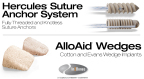 The Hercules Suture Anchor and AlloAid Wedge Systems provide pull-through sales opportunities in previously unaddressed areas of the In2Bones portfolio of products. They are delivered pre-sterilized and OR-ready, providing logistical, quality, and cost benefits to the healthcare provider.
