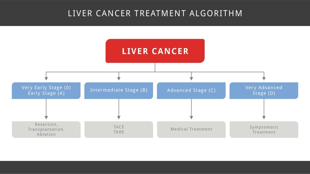 Treatment for liver cancer can include surgery, ablation, embolization therapy, radiation, targeted therapy, chemotherapy and immunotherapy. Treatment is determined by the stage of liver cancer.