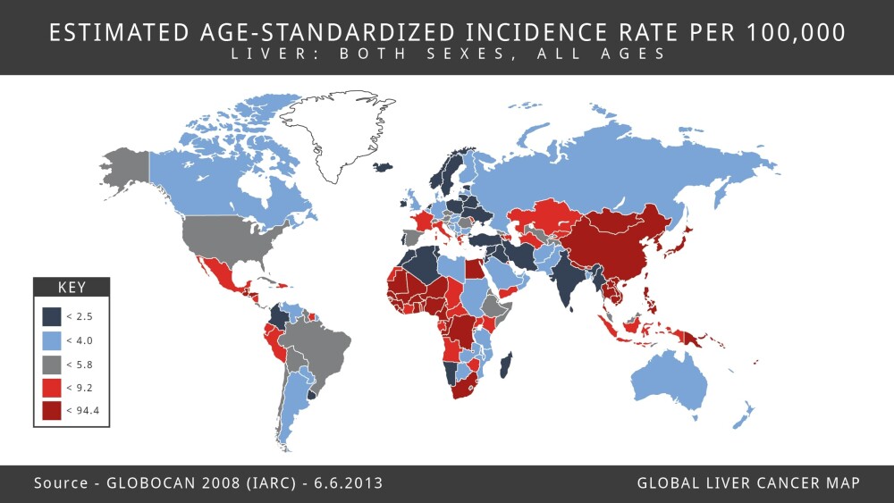 Liver cancer is now the fastest increasing cause of cancer death in the U.S. The American Cancer Society estimates that in 2020 about 30,160 people (20,020 men and 10,140 women) will die from primary liver cancer and intrahepatic bile duct cancer. On a global scale, liver cancer was the sixth most commonly diagnosed cancer and the fourth leading cause of cancer death in 2018, with about 841,000 new cases and 782,000 deaths annually.