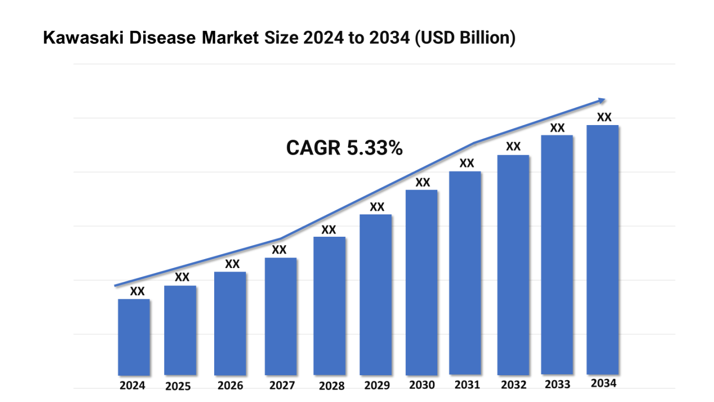 The Kawasaki disease market is expected to reach a growth rate (CAGR) of 5.33% during 2024-2034. The market is driven by advancements in diagnostic tools, increased awareness, and improved treatment protocols. Biopharmaceutical companies are focusing on developing targeted therapies and immunoglobulin products. Research on genetic factors and biomarkers is enhancing early detection and personalized treatment approaches, driving market growth and patient outcomes.