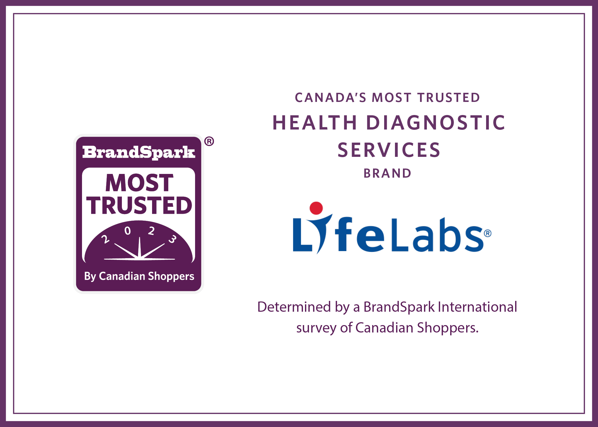 Canadians across the country have named LifeLabs’ as the Most Trusted Brand in Health Diagnostic Services.