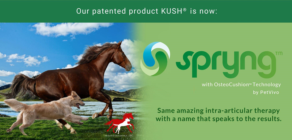 “We believe the brand name “SPRYNG” clearly depicts the beneficial results derived from our therapeutic product administered to animals suffering from osteoarthritis or other lameness afflictions,” said Russ Siakel, Director of Marketing for PetVivo Holdings, Inc. “We have truly witnessed the restoration of a “SPRYNG in the step” of companion animals that have received this life-changing product.”