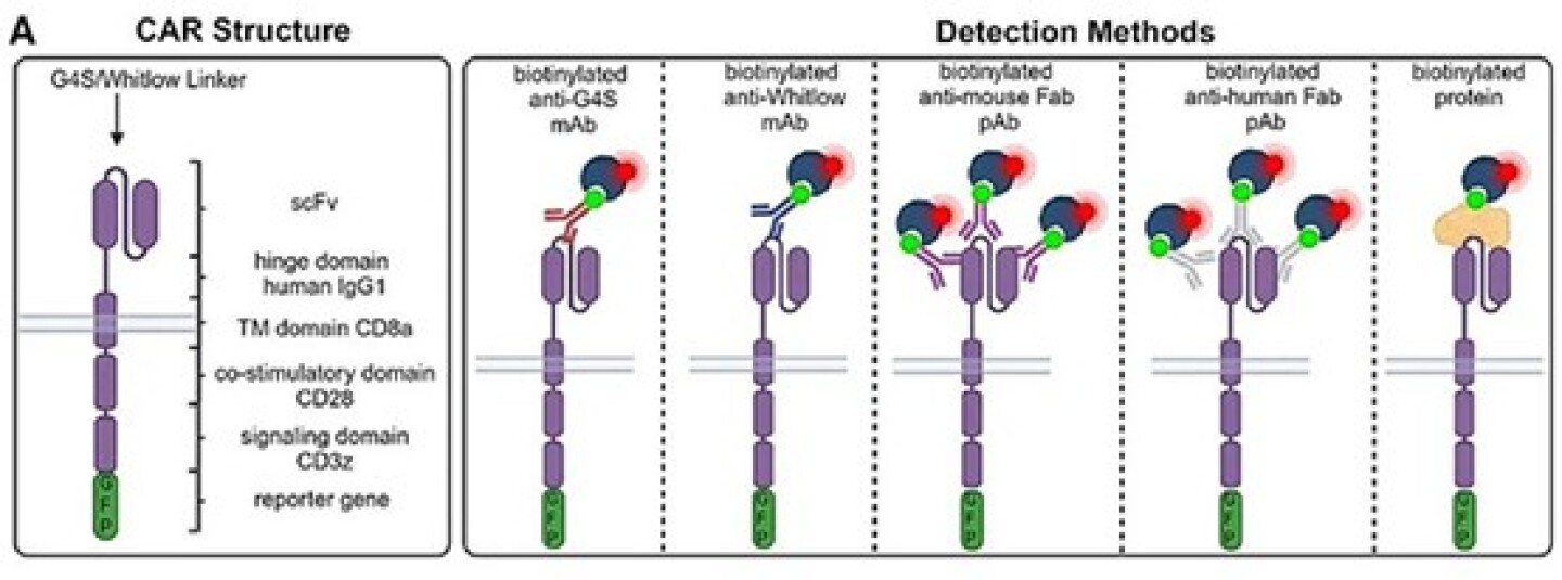 Detects any CAR construct containing the Whitlow 218 Linker, eliminating the need for target-specific reagents. - Multiple Conjugate Options