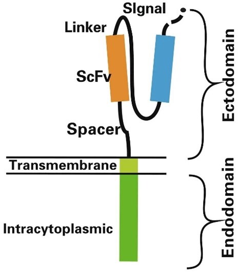 1) Extracellular Antigen-Binding Domain: The core targeting region, typically a single-chain variable fragment (scFv), designed to recognize specific tumor-associated antigens with high specificity.