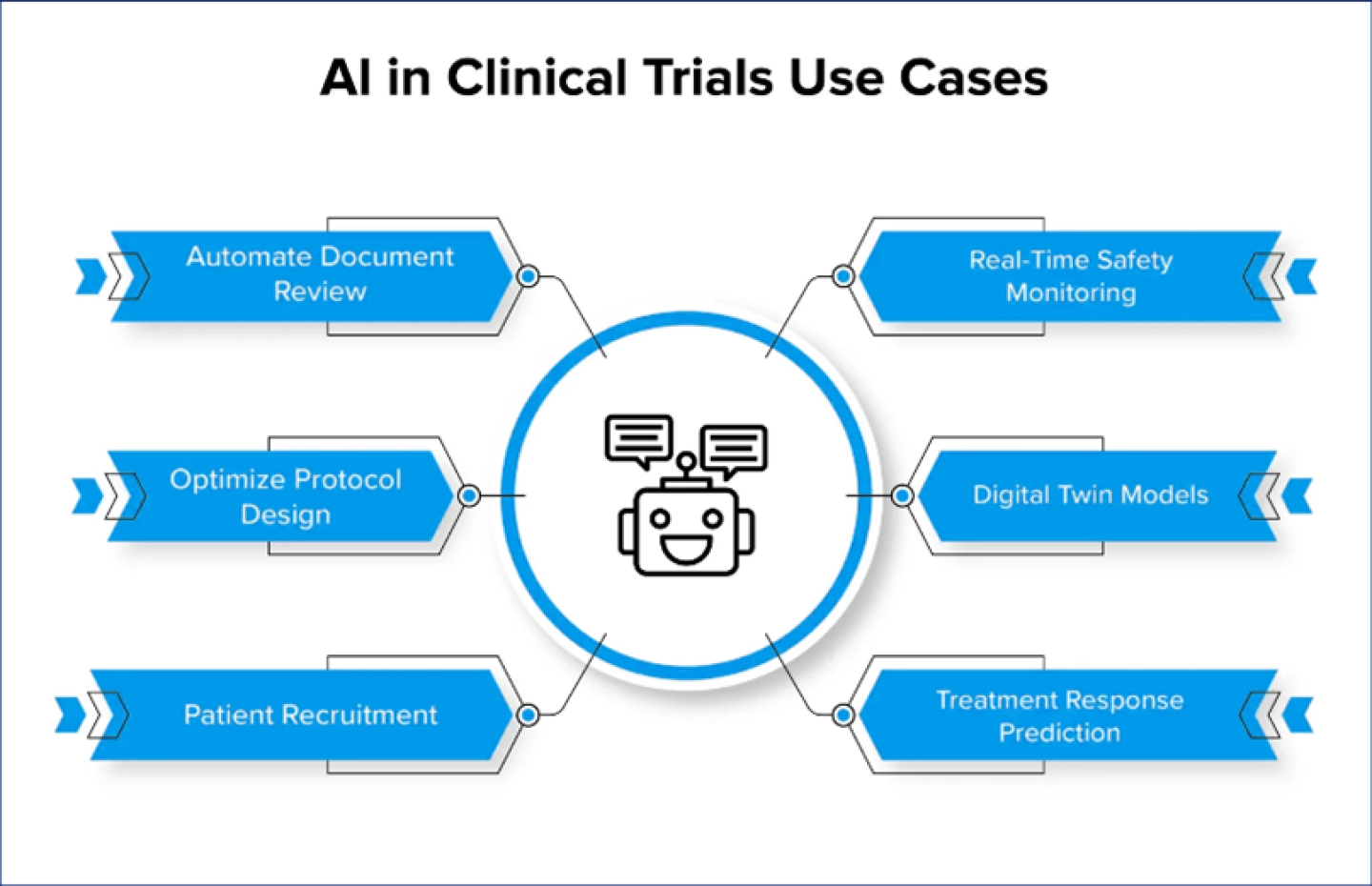 · The use of AI in clinical trials starts from the initial stages, where it transforms the way study protocols are designed. By analyzing historical data, the technology suggests protocol improvements, defines endpoints, and recommends patient recruitment criteria, leading to more efficient and scientifically robust trials.