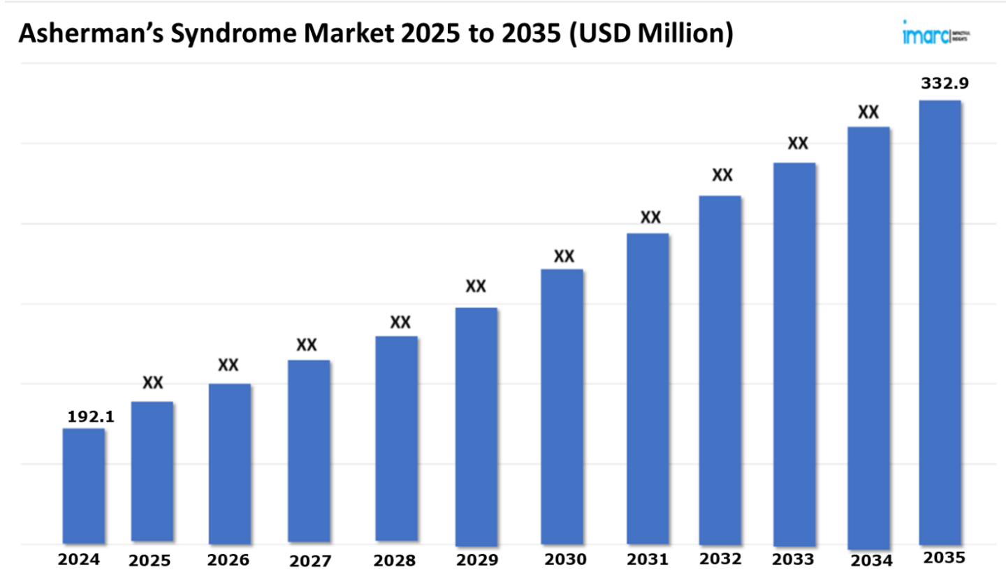 The Asherman’s syndrome market reached a value of USD 192.1 Million in 2024. Looking forward, IMARC Group expects the 7MM to reach USD 332.9 Million by 2035, exhibiting a growth rate (CAGR) of 5.13% during 2025-2035. The rising adoption of non-invasive and minimally invasive treatment options, such as hysteroscopic adhesiolysis and advanced regenerative therapies, that effectively treat intrauterine adhesions with less recovery time and minimal complications, is driving the Asherman's Syndrome market. These advanced techniques are essential for the restoration of uterine function, improvement in fertility results, and prevention of recurrence of adhesions to enhance patient satisfaction and quality of life. These techniques are alternatives to more invasive procedures, have fewer long-term health risks, and provide efficient solutions for patients who are managing the challenges of Asherman's Syndrome. The availability of newer technologies, including high-resolution hysteroscopes and anti-adhesion barriers, enhances the accuracy and success of the treatments, hence becoming increasingly preferred by both the patients and healthcare providers.