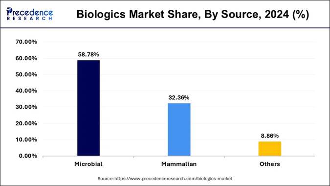 🔹 By source, the microbial segment held the major market share of 58.78% in 2024.