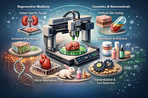 ● Standardization and Regulation: International guidelines must be established to ensure the biocompatibility of bio-inks and the reproducibility of printed outputs.