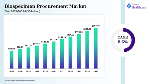 The global biospecimen procurement market size was estimated at USD 90.89 million in 2025 and is predicted to increase from USD 98.71 million in 2026 to approximately USD 207.40 million by 2035, expanding at a CAGR of 8.60% from 2026 to 2035.