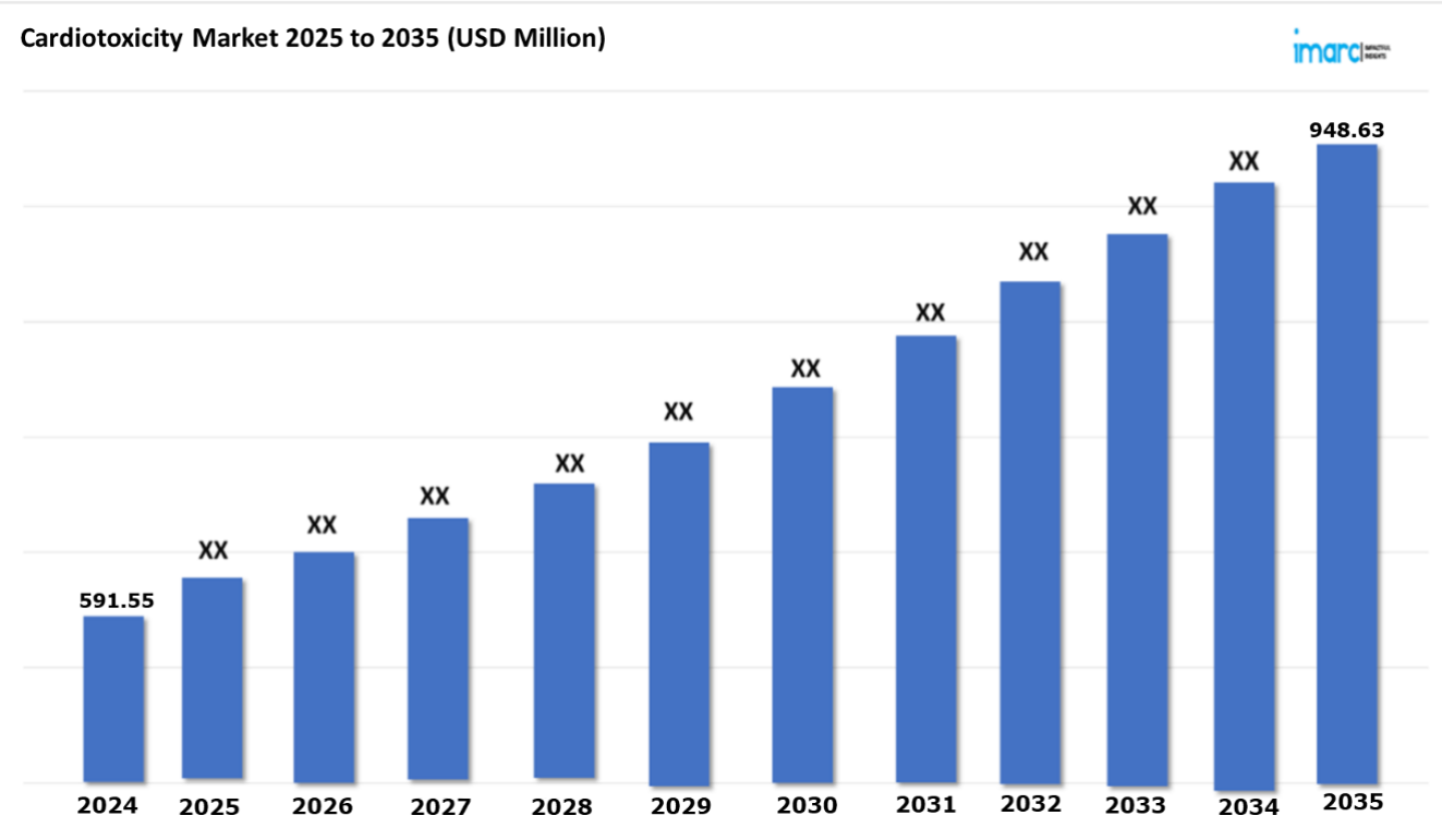 The 7 major Cardiotoxicity market reached a value of USD 591.55 Million in 2024. Looking forward, IMARC Group expects the 7MM to reach USD 948.63 Million by 2035, exhibiting a growth rate (CAGR) of 4.37% during 2025-2035. The cardiotoxicity market is growing rapidly, driven by increasing heart disease incidence and the cardiac side effects due to cancer therapy. With chemotherapy and targeted therapies being known to induce cardiac complications commonly, there is a need for helpful and very effective ways of detecting, monitoring, and treating such cases. All developments that involve the latest diagnostic tools, including biomarkers and imaging options, are bound to boost this expanding market. A greater opportunity is also opened for drug developers and clinicians with the introduction of new drugs and with increasing awareness of cardiotoxicity in clinical practice. The market also draws traction from personalized medicine studies in susceptible patient populations.