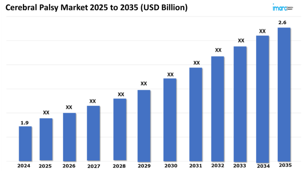 The 7 major cerebral palsy market reached a value of USD 1.9 Billion in 2024. Looking forward, IMARC Group expects the 7MM to reach USD 2.6 Billion by 2035, exhibiting a growth rate (CAGR) of 2.59% during 2025-2035. The market for Cerebral Palsy (CP) is fueled by the rapid adoption of noninvasive and minimally invasive treatment options, including botulinum toxin injections, transcranial magnetic stimulation (TMS), and wearable assistive devices. Such advanced therapeutic approaches manage spasticity, enhance motor function, and improve quality of life while reducing the time of recovery and the risks that may result from recovery following an invasive procedure. Innovations such as robotic-assisted therapies, virtual reality-based rehabilitation, and advanced orthotic devices provide targeted interventions against motor impairments, promote neuroplasticity, and improve patient outcomes. Techniques especially appeal to patients and carers seeking efficient, less burdensome, and highly customizable treatment options, contributing to increased patient satisfaction and adherence to therapy.