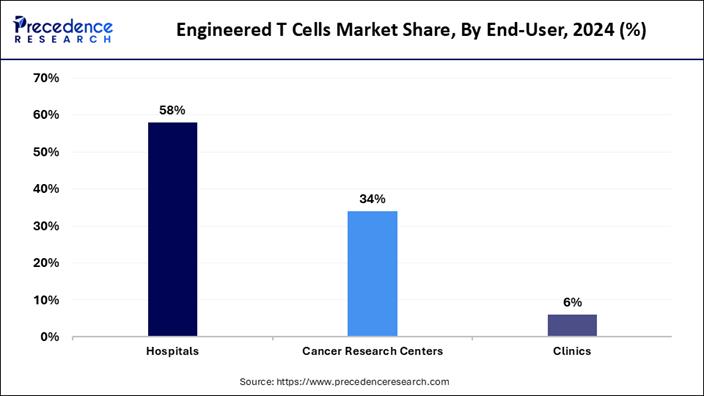 The chimeric antigen receptor-modified T cells segment held the largest share of the engineered T cells market in 2024, owing to its effectiveness in the treatment of blood cancers such as lymphoma and leukaemia. Moreover, the by identifying exact cancer targets while destroying tumours, the segment has gained major industry attention in recent years.