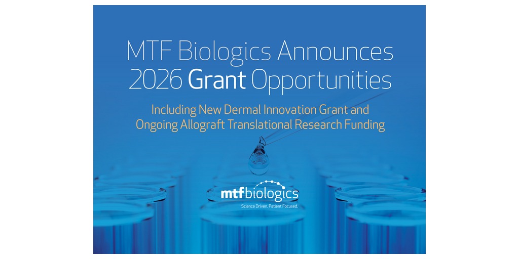 EDISON, N.J.--(BUSINESS WIRE)--MTF Biologics, a global nonprofit organization that saves and heals lives through tissue and organ donation, transplantation, and research, today opened the call for proposals for its 2026 Allograft Research Grant Program. The 2026 program features the organization’s long-standing Innovation in Allografts Translational Research Grant Program and a new Dermal Allograft Innovation Grant, designed to accelerate the development of next generation technologies in allograft dermis and skin. Proposals will be accepted until March 23, 2026, and full requests for proposals are available at www.mtfbiologics.org/grants.