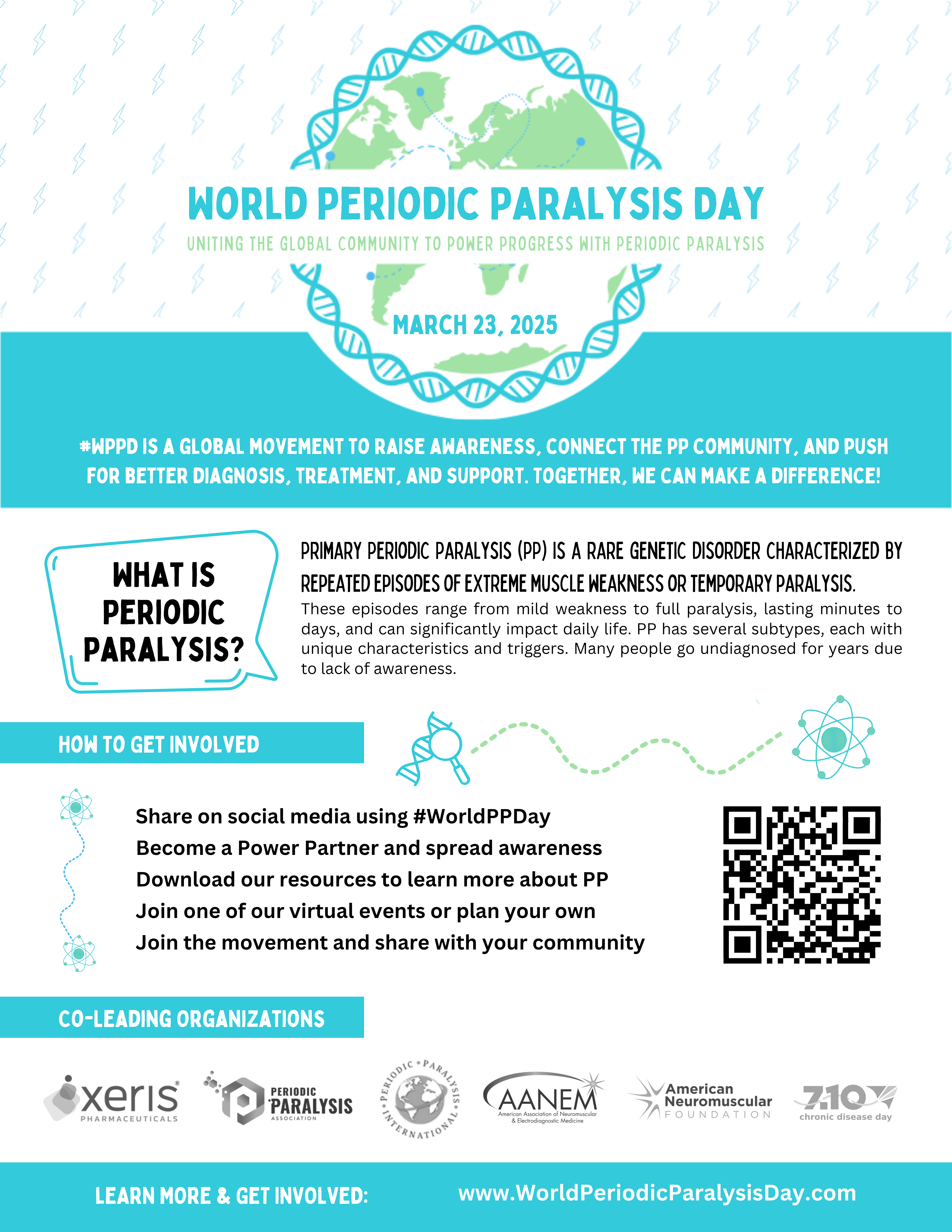 For more information, educational resources, and additional ways to get involved visit https://worldperiodicparalysisday.com/.