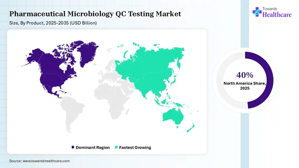 • North America dominated the pharmaceutical microbiology QC testing market by 40% in 2025.