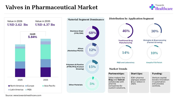 industry segmentation with our Annual Membership: https://www.towardshealthcare.com/get-an-annual-membership The Valves in Pharmaceutical Market: