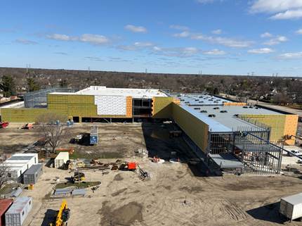 steel structure nearly completed, interior work is set to begin soon. When