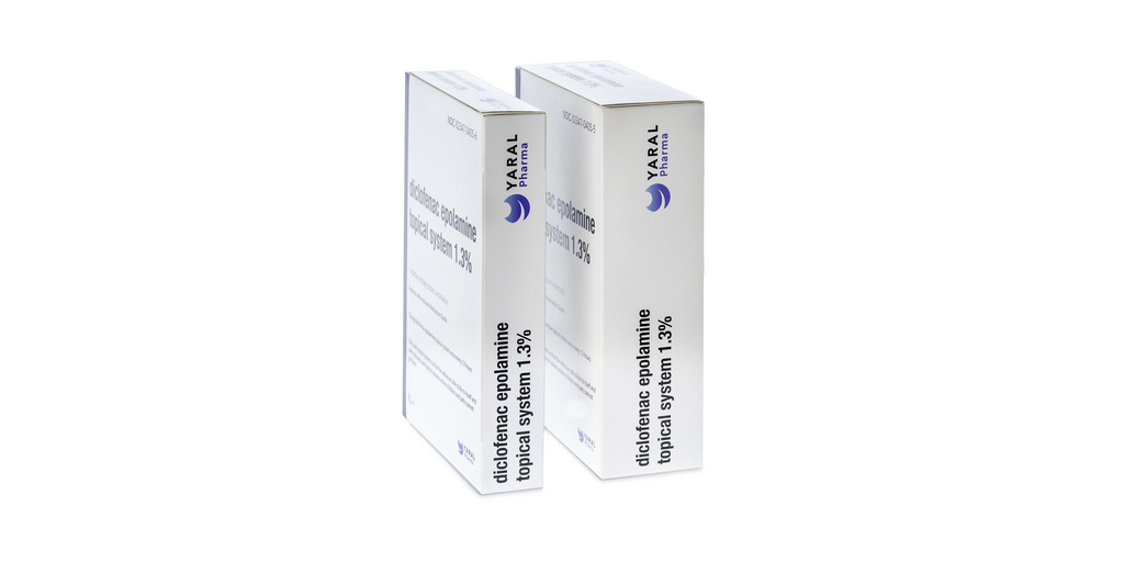 YARAL Pharma’s Diclofenac Epolamine Topical System 1.3% is a nonsteroidal anti-inflammatory drug (NSAID) and is indicated for the topical treatment of acute pain due to minor strains, sprains, and contusions in adults and pediatric patients 6 years and older.