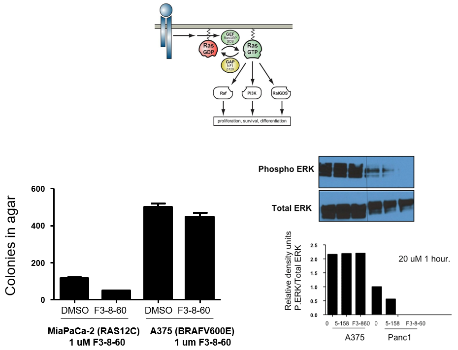 F3-8-60 suppresses RAS mitogenic signaling pathways in Panc1 cells (KRAS12D)