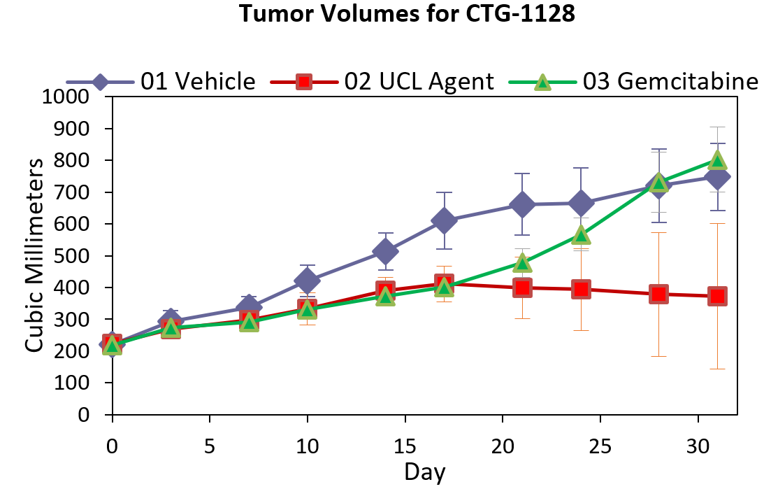 Poster 4069, “The potent quadruplex-binding compound QN-302 shows anti-tumor activity in patient-derived invivomodels of pancreatic cancer” (Dr. Stephen Neidle) outlined a study in which QN-302 displayed substantial anti-tumor activity in three patient-derived xenograft (PDX) models for pancreatic ductal adenocarcinoma (PDAC). Immunocompromised mice were subcutaneously implanted with PDX tumor fragments. Mice intravenously received either QN-302, a vehicle, or in some models, gemcitabine. In three of these models, significant changes in tumor growth were observed in those that received QN-302, together with good tolerance and bioavailability at therapeutic doses.