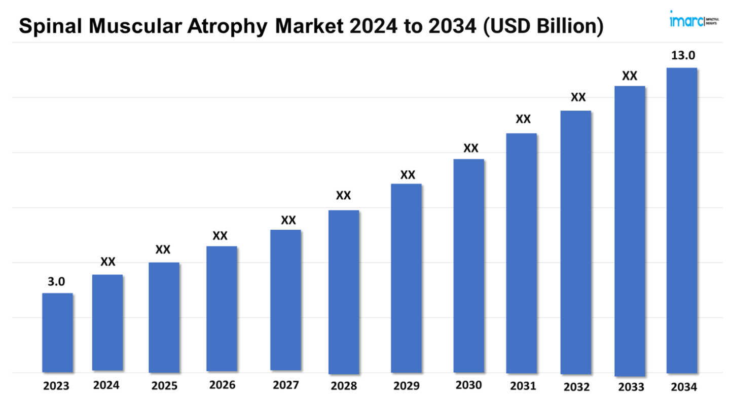 The spinal muscular atrophy market size reached a value of US$ 3.0 Billion in 2023. Looking forward, IMARC Group expects the 7MM to reach US$ 13.0 Billion by 2034, exhibiting a growth rate (CAGR) of 14.28% during 2024-2034.