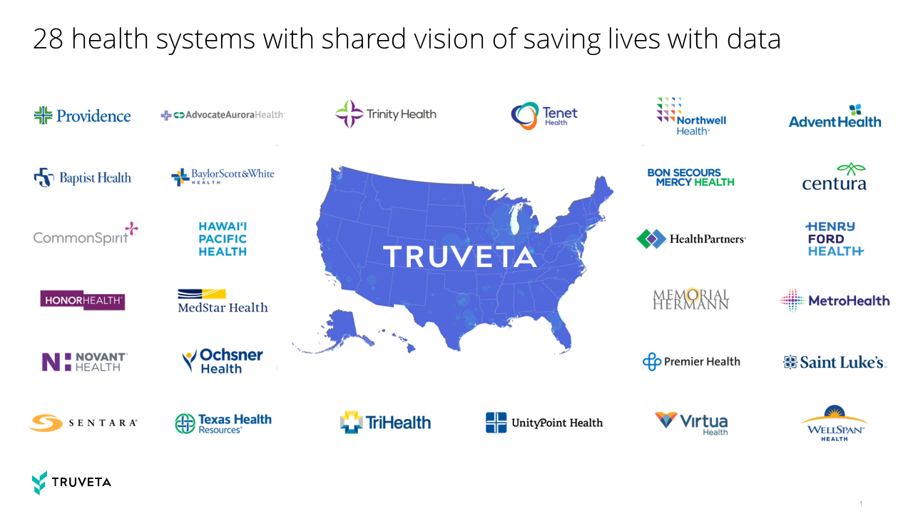 Truveta’s 28 members provide 16% of patient care in the United States in more than 20,000 clinics and 700 hospitals. De-identified data from this care is provided to Truveta daily. Truveta membership includes Providence, Advocate Health, Trinity Health, Tenet Healthcare, Northwell Health, AdventHealth, Baptist Health of Northeast Florida, Baylor Scott & White Health, Bon Secours Mercy Health, Centura Health, CommonSpirit Health, Hawaii Pacific Health, HealthPartners, Henry Ford Health System, HonorHealth, MedStar Health, Memorial Hermann Health System, MetroHealth, Novant Health, Ochsner Health, Premier Health, Saint Luke’s Health System, Sentara Healthcare, Texas Health Resources, TriHealth, UnityPoint Health, Virtua Health, and WellSpan Health.
