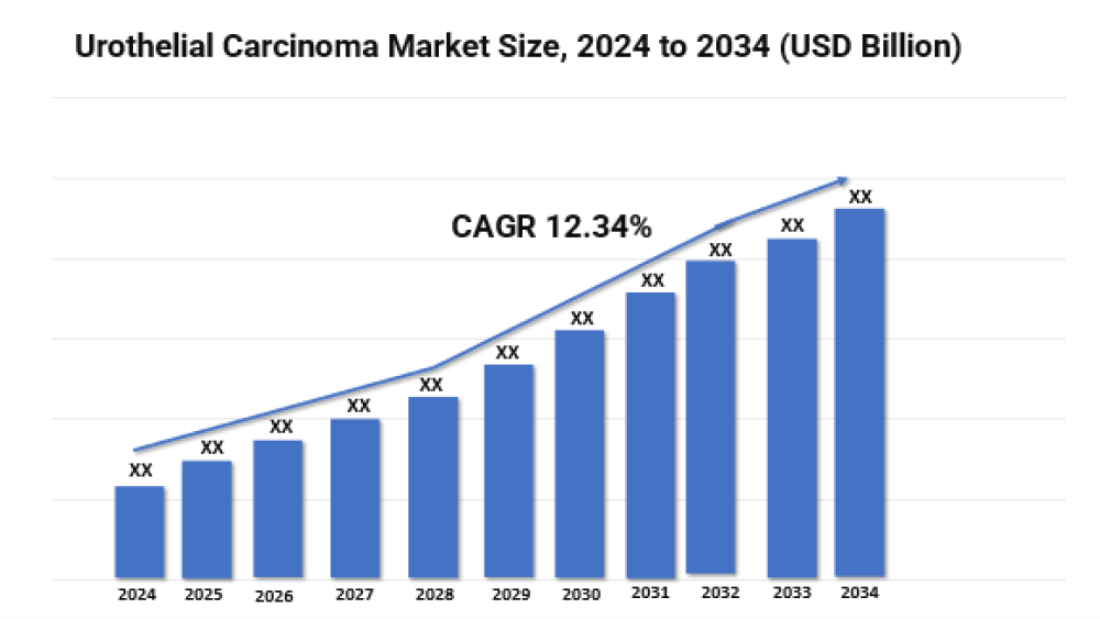 The urothelial carcinoma market is expected to reach a growth rate (CAGR) of 12.34% during 2024-2034. The market is driven by numerous advancements in immunotherapy and targeted treatments. New therapies, including checkpoint inhibitors and novel molecular targets, are reshaping treatment paradigms. Increased research funding and clinical trials are enhancing drug development, promising better outcomes and personalized options for patients.